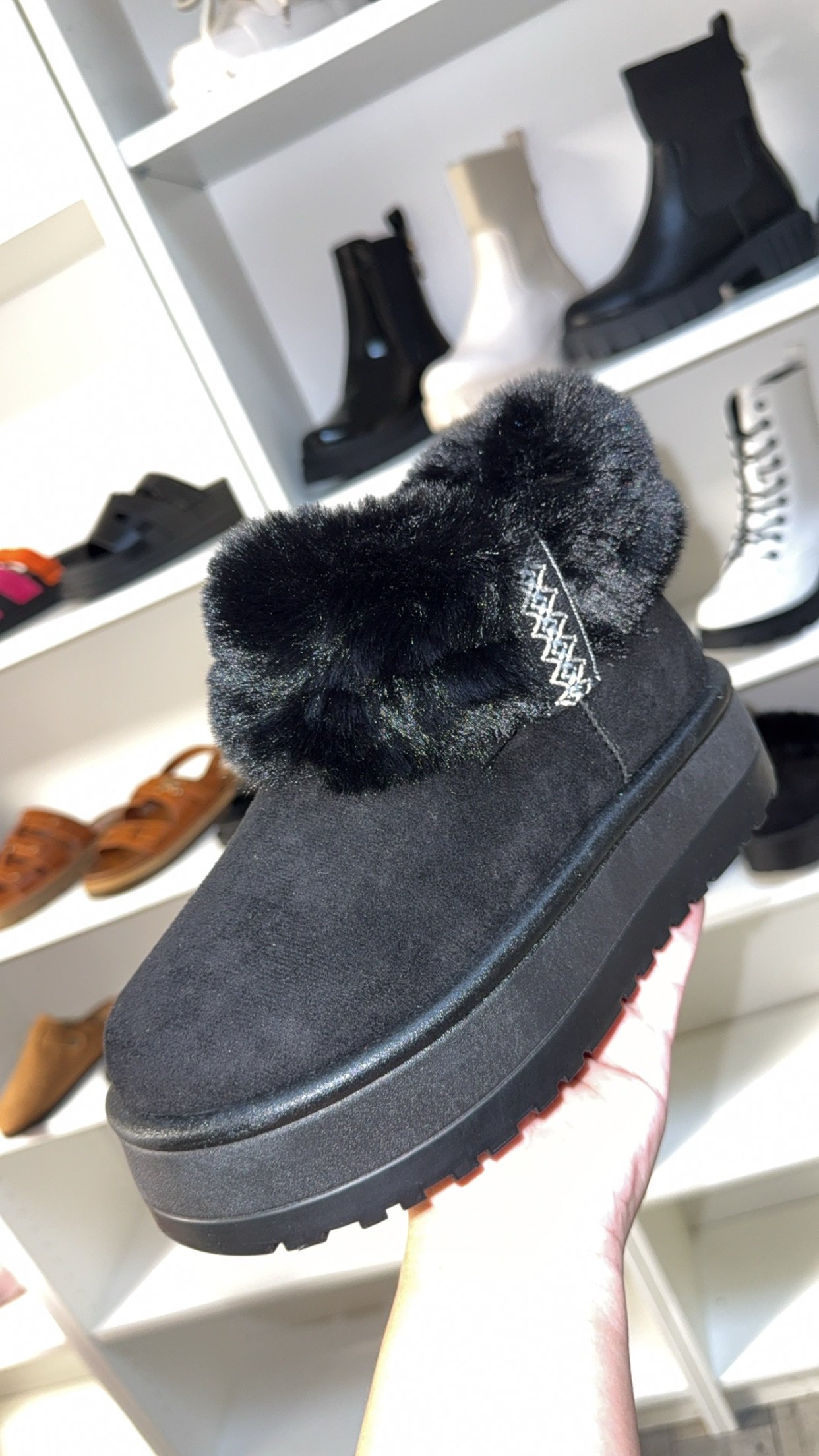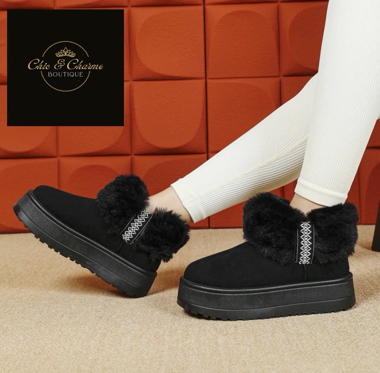 ✨Chic et confortable, la bottine Brodé Style séduit par son allure moderne. Confectionnée en noir profond, elle se distingue par un col et un intérieur en fourrure douce pour une chaleur optimale. Une broderie noire et blanche subtile vient habiller le côté de la bottine, tandis que la semelle épaisse assure confort et tendance. Idéale pour un look élégant et cosy à la fois✨