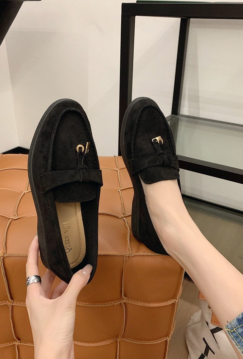 ✨Mocassins en suédine (daim synthétique) disponibles en taupe et noir. Petit détail décoratif sur le dessus du pied. Élégants et faciles à porter, parfaits pour un look chic et confortable au quotidien ✨