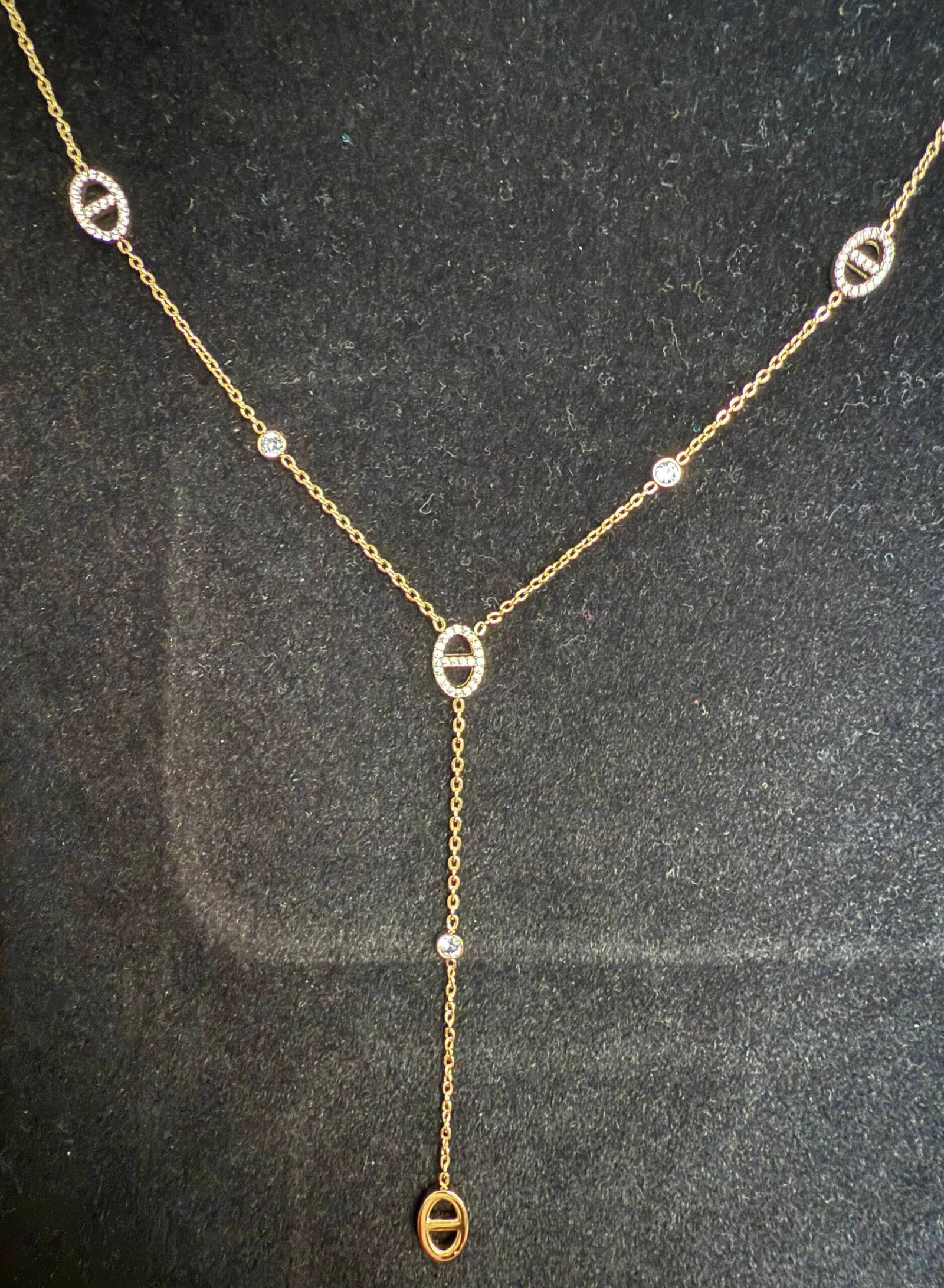 ✨ Succombez au charme de ce collier tombant au design raffiné, inspiré des créations des grandes maisons de bijoux. Sa maille délicate, parcourue de petites pierres scintillantes, apporte un éclat subtil et élégant. Confectionné en acier inoxydable doré, ce bijou allie résistance et brillance durable. Son style tombant crée un mouvement fluide et léger, parfait pour sublimer votre décolleté et apporter une touche moderne et sophistiquée à toutes vos tenues ✨
