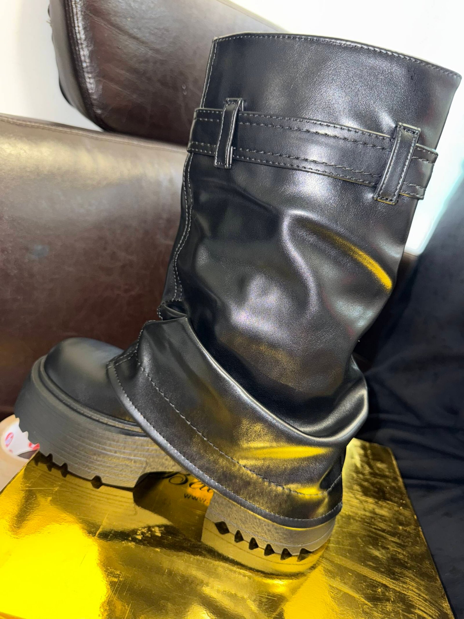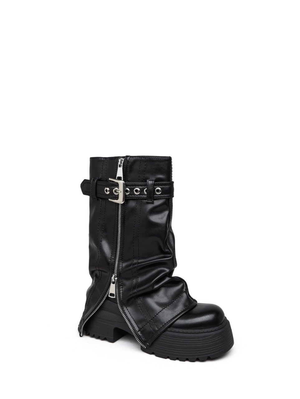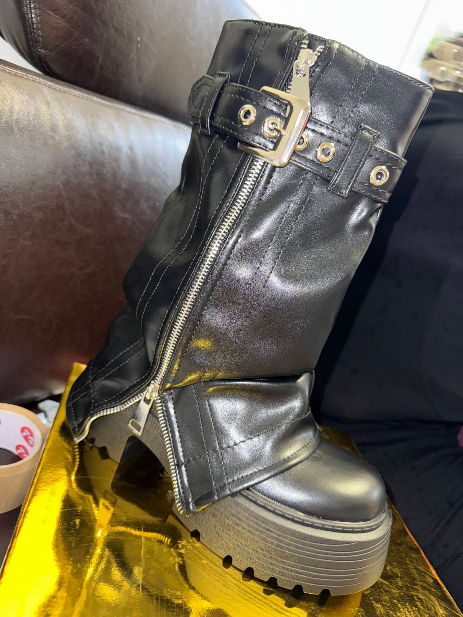 ✨Bottes mi-hautes au charme sombre et raffiné, avec revers chic, fermeture éclair et ceinture décorative pour un look rebelle et élégant✨