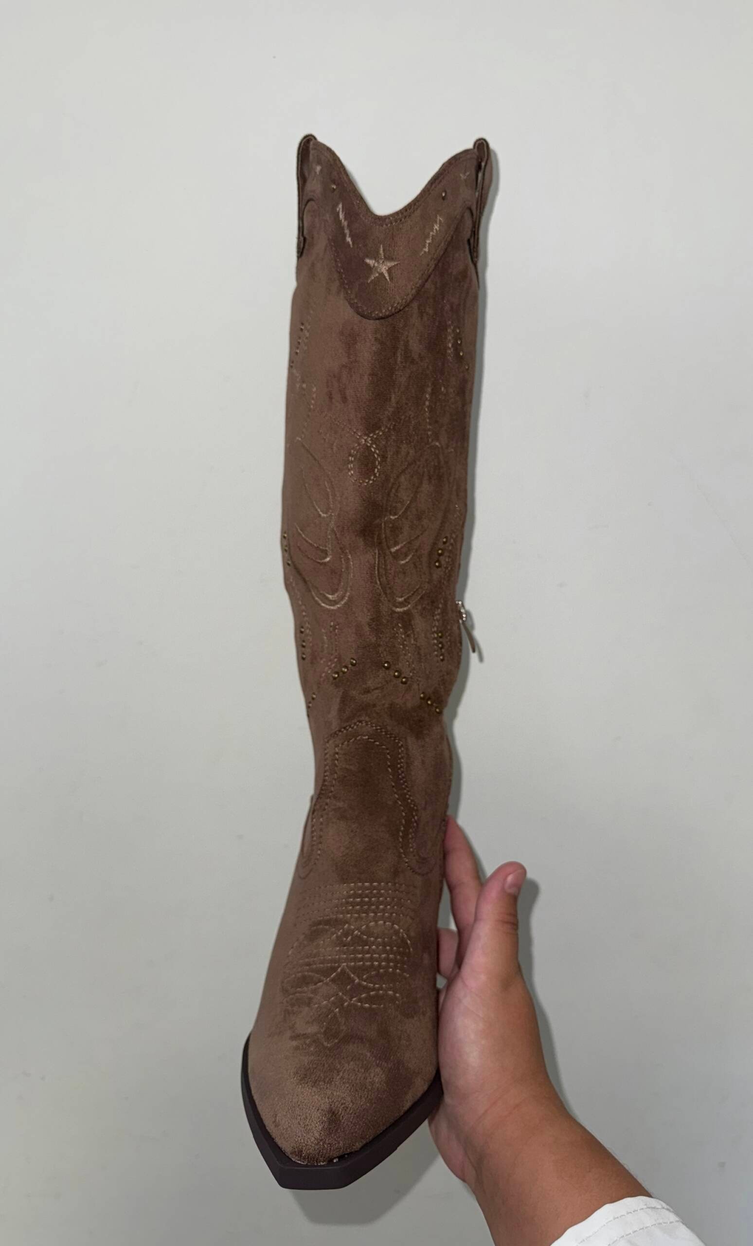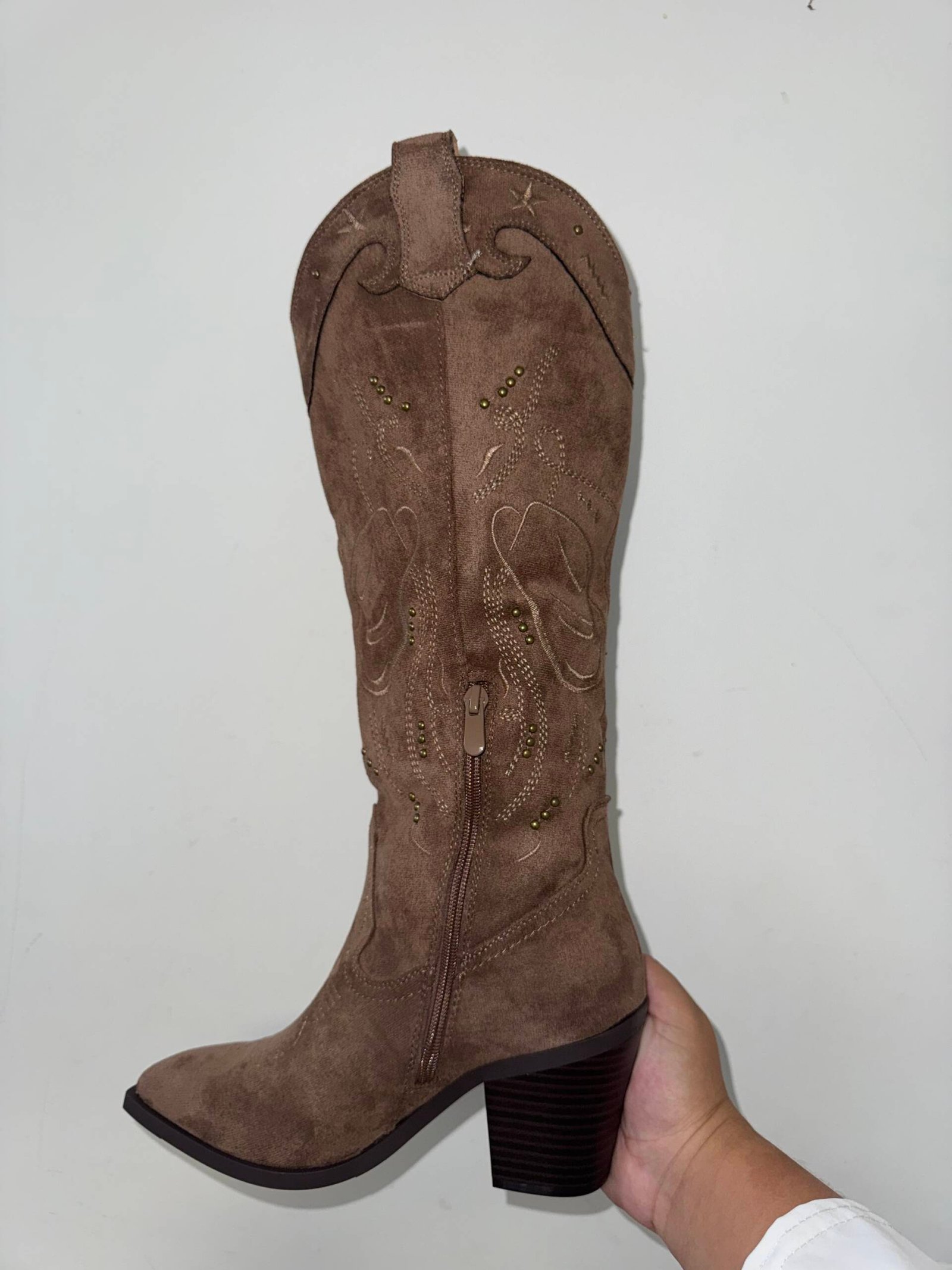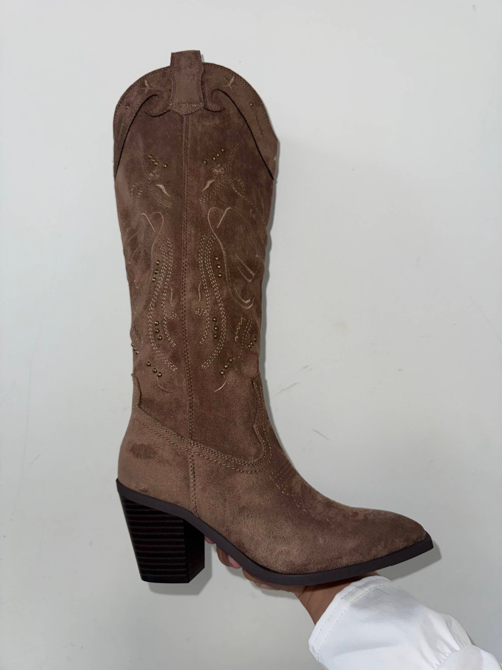 ✨Sublimez vos looks avec ces santiags en daim suédine strasse , alliant style western et raffinement moderne. Leur talon biseauté de 8 cm élance la silhouette tout en restant confortable au quotidien. Grâce à leur fermeture éclair intérieure montant jusqu’au milieu du mollet, elles s’enfilent facilement sans compromettre leur design authentique. Polyvalentes et tendance, ces bottes deviendront vite un incontournable de votre garde-robe✨